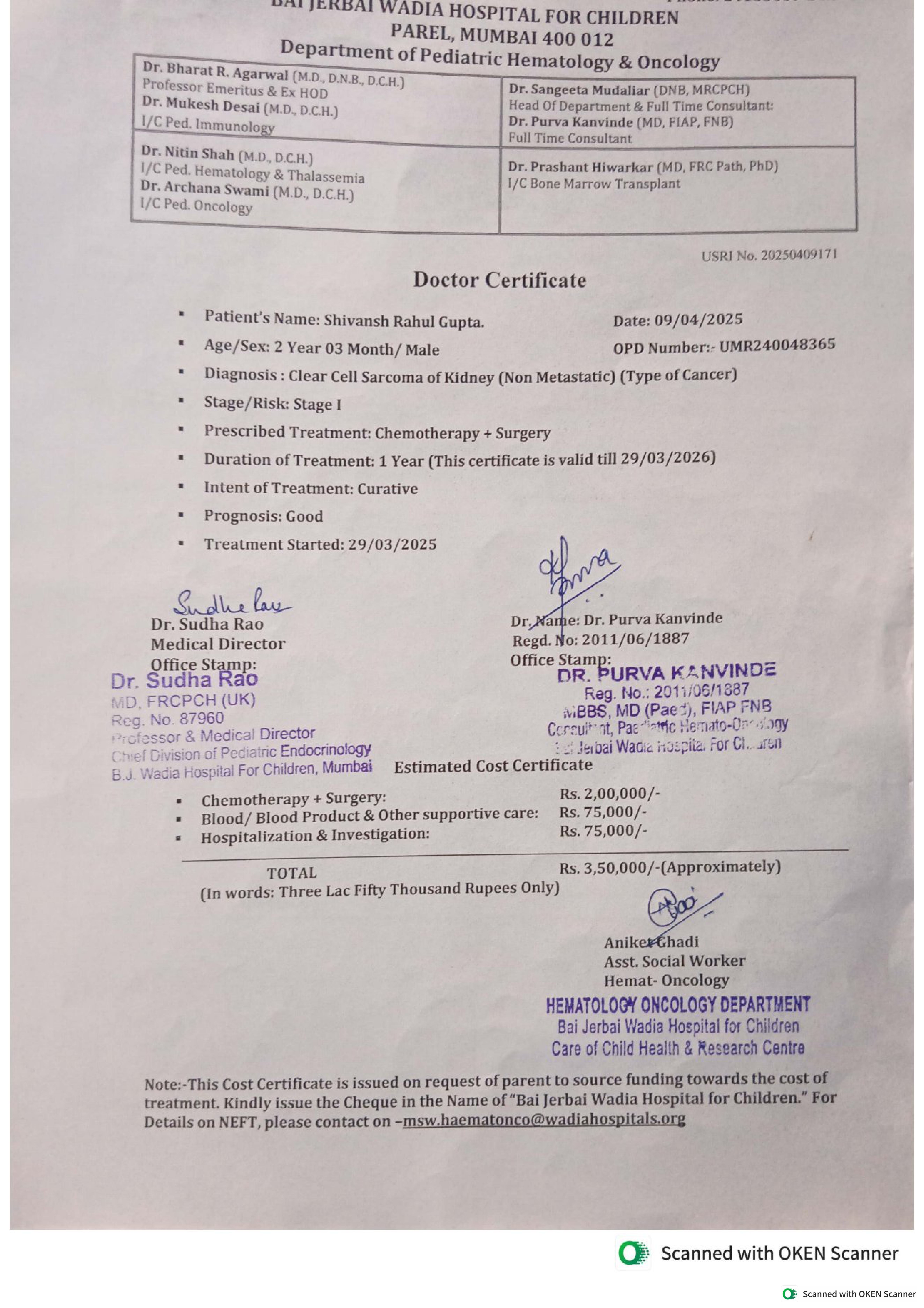 Please find the official medical reports and cost estimates verified by the hospital.
